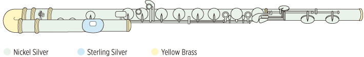 Sterlingsilber Mundlochplatte und Kamin, Kopfstück, Korpus und Fußstück, Mechanik: Neusilber, versilbert - gezogene Tonlochkamine